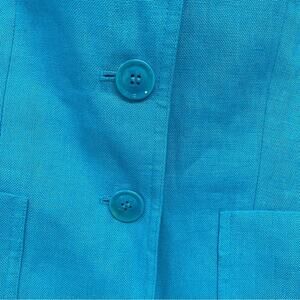 Talbots Cyan Blue Linen Boxy Fit 3 Buttons Blazer Jacket Womens 4P Classic