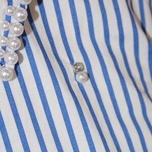Talbots, Daffodil Stripe shirt Embellished with Pearls and Rhinestones