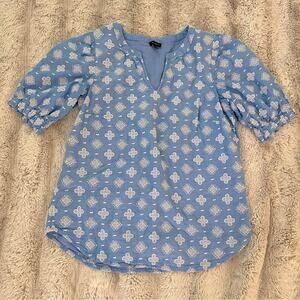 Talbots Dancing Flowers Embroidered Blue Costal Blouse