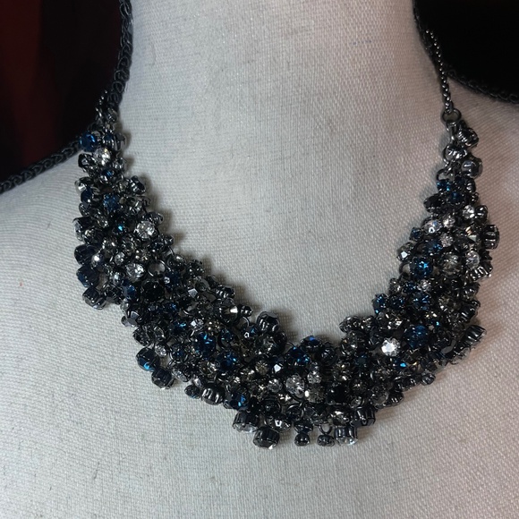 Talbots Dark Blue & Silver Rhinestone Necklace