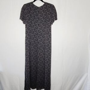 Talbots Dark Floral Maxi Dress Size 14 Lined Short Sleeve Vintage Retro Modest