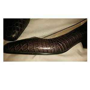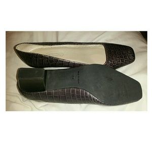 Talbots. Size 8W. Dark gray and black croco print. Heel is approx 2 inches high. Leather upper balance man made. Made in Spain.