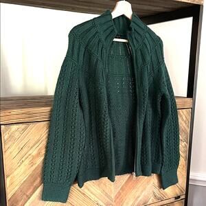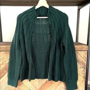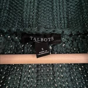 Talbots Dark Green Cable Knit Full Zip Cardigan Sz S