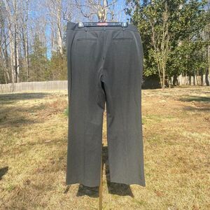 - Classic dark grey twill mid-weight mid-rise pleated straight wide leg workwear slacks by Talbots