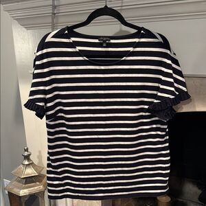 Talbots Dark Navy and White Boxy Short Sleeve Tee with ruffled sleeves size Lp