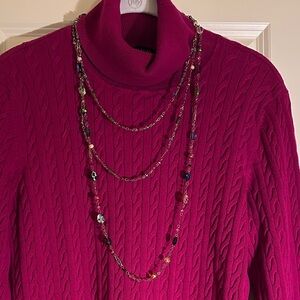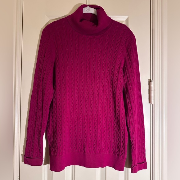 Soft and comfortable cable knit design. So versatile - you can pair it on its own with jeans or pants, dress it up with a scarf, put it under your favorite blazer or jacket... This sweater is a great closet staple, perfect for cooler weather. Excellent used condition with no notable tears, stains, flaws, or other damage.