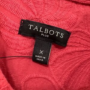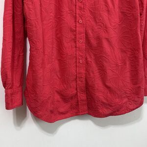 Talbots Deep Coral X (XL) Blouse Top Embroidered Leaf Tropical Palm Textured