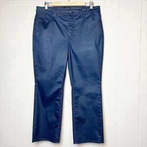 Talbots Demi Boot Crop Jeans 12 navy blue waxed coated high rise waist solid