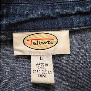 Talbots Denim Jacket w/Embroidered Flowers Brass Buttons Size Large