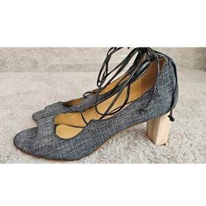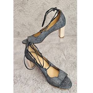 Talbots Denim Look Hillary Strappy Lace Up Peep-Toe Ankle Tie Pump Heels Size 8M