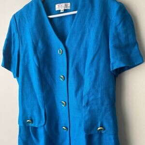 Talbots Depeche Blue 100% Rayon Double Weave V-neck S/S Button Down Dress - 16