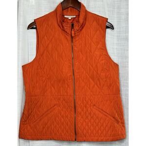 Talbots Diamond Quilted Vest Orange 100% Polyester Lined Sz Petite Large