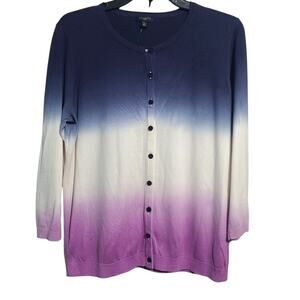 Talbots Dip-Dye Ombre Lavender and Blue Cardigan Sweater Size LP NWT