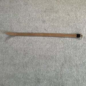 This Talbots belt is a dark brown genuine leather with an alligator pattern. It has a round goldtone buckle. It is in very good condition with a few signs of wear that are covered when you wear it. Please see photos.