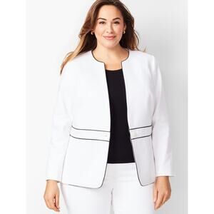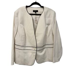 Talbots Dobby Weave Piped One Button White Blazer Career Jacket NWT Plus Size 18W