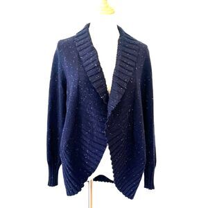 Talbots Donegal Navy Blue Speckled Open Front Cardigan Sweater Small