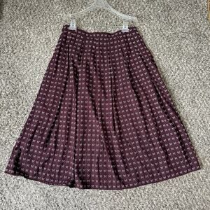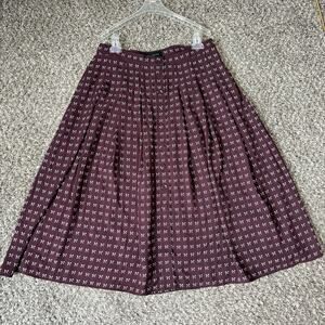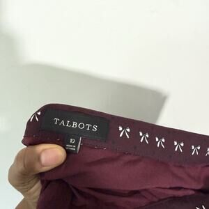Talbots Dotty Bows Button Front Midi Full Skirt Sz 10 Burgundy Fall Fashion New