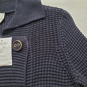 Talbots Double-Breasted Knit Coat Sweater 3/4 Sleeve Navy Nautical Preppy Size S