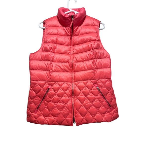 Talbots Down Fill Quilted Vest Womens Medium Salmon Pink Puffer Full Zip Outdoor