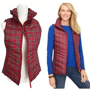 Talbots Down-Fill Puffer Vest – Cheerful Plaid – Petite Small Cozy Lightweight