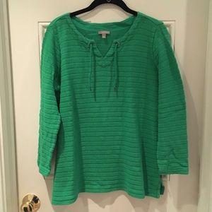 Talbot’s “Racquet Pique Top” in Country Club Green is a nice mid-weight Top for Spring. 23 inches pit to pit.