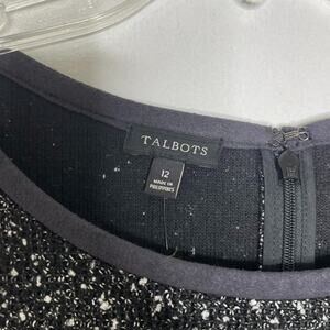 Talbots Dress 12 Black Bouclé Knit Tweed Sheath 3/4 Sleeve Holiday Classic NEW