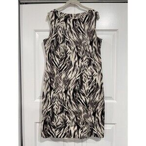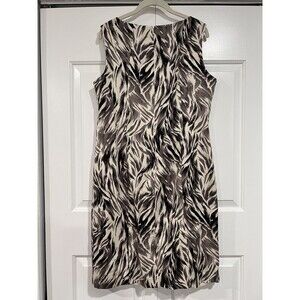Talbots Dress 14 Cream Black Gray Sheath Stretch Cotton Career Church
