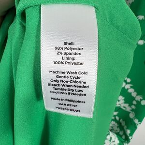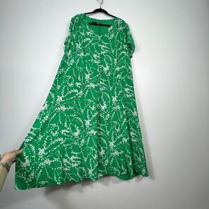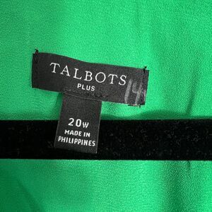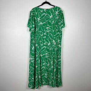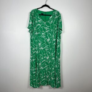 Talbots Dress 20W Kelly Green Floral Crepe Fit Flare Flowy Button Front Romantic