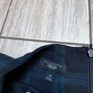 Talbots Dress 2P Blue Green Plaid Stretch Wool Sleeveless Christmas Floral Lace