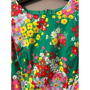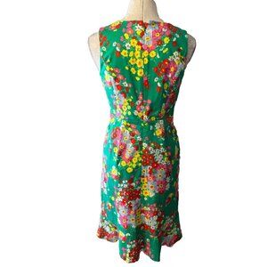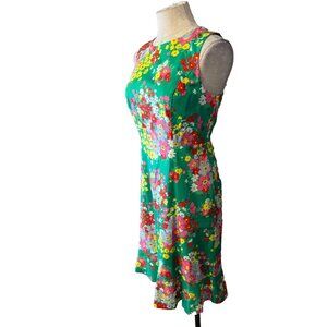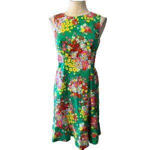 Talbots Dress 4 P 4P Green Floral Sleeveless Stretch Cotton Summer Washable