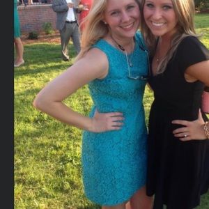 Turquoise Lace dress, 2 petite. Only worn 3 times to different weddings and it has been dry cleaned and ready to go.