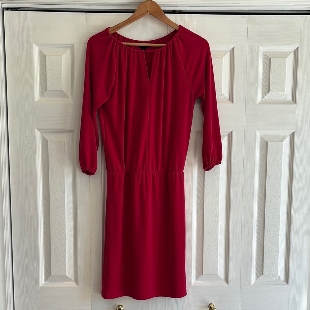 Talbots dress size P petite pull on style elastic waist and sleeve hot pink/red color good condition small stain and a couple of picks on sleeve (see photos).