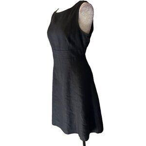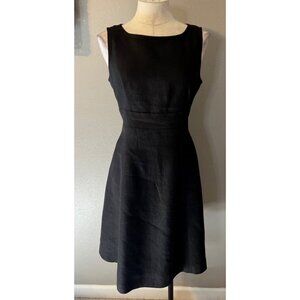 This pretty dress is from Talbot's in a petite size 10. Fully lined. Made of Irish linen in solid jet black. Has a smooth fit with hidden zipper at the back. Full A line skirt.