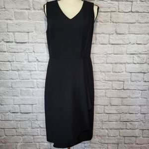 Talbots Dress Black Sleeveless Back Zipper Vneck Flutter Skirt Detail Size 6