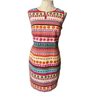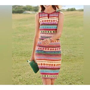Talbots Dress Colorful 14P 14 P Sheath Stretch Cotton Washable Sleeveless Summer