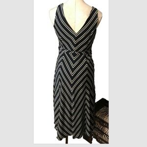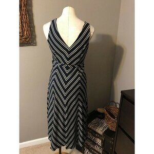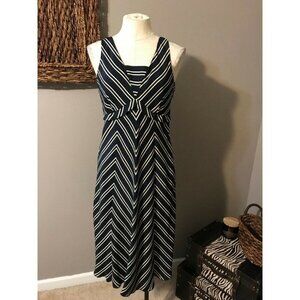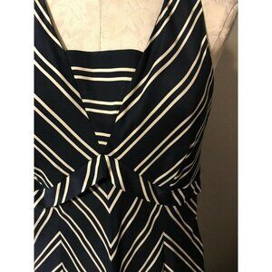 Talbots Dress Navy Blue White 8 Sleeveless Mid Length Silk