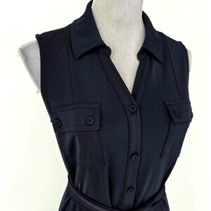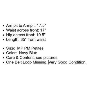 Talbots Dress Petites MP PM Navy Blue Stretch Knit Button Front Maxi Belt Career