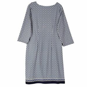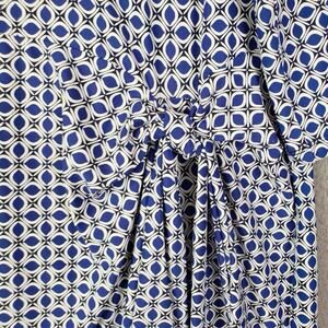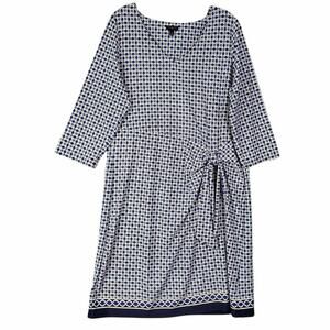 Talbots Dress Plus Size 1X Geometric Blue Shift 3/4 Sleeve Tie Stretch