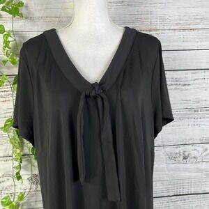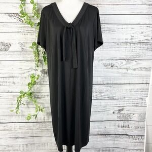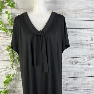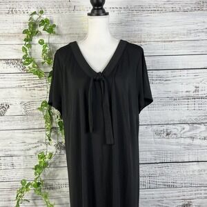 Talbots Dress Plus size 2X Black Slinky Knit Jersey Stretch Bow Midi Modest Slim
