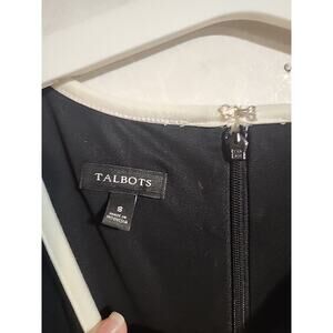 Talbots Dress Sheath Midi Black Heavyweight Short Sleeve Zip Back 8 Round Neck