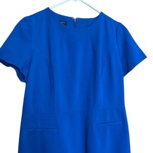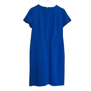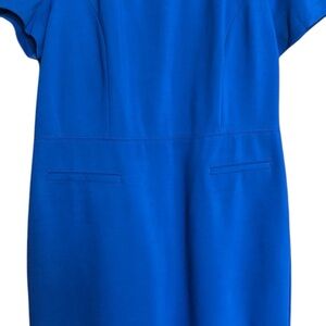 Talbots Dress Sheath Royal Blue Pearl Detail Short Sleeve Stretchy Size 10