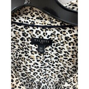 Talbots Dress Shirt Womens 2X Top Animal Print Cheetah Leopard Button Up Cotton
