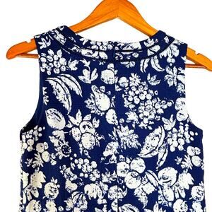 Talbots Dress Size 4 Navy Sleeveless Dress Fruit Pattern Stretch Woven Sheath