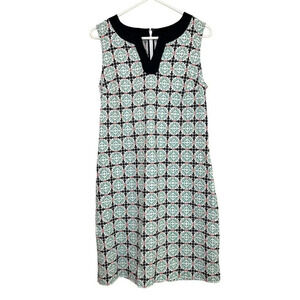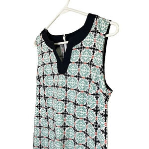 Talbots Dress Sz 4 Morrocan Tile Linen Cotton Sheath Sleeveless Navy Aqua Coral