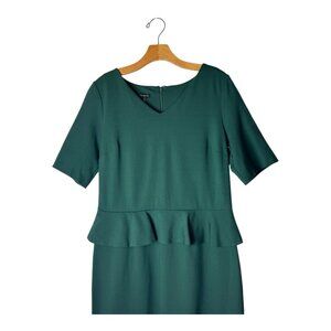 Talbots Dress Women 10 Green Refined Ponte Knit Peplum Sheath Knee Length Preppy