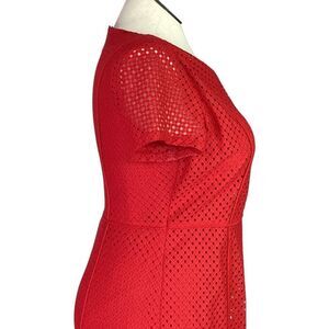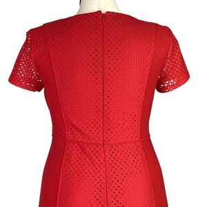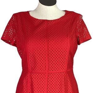 Talbots Dress Women 14P Petite Red Cotton Blend Eyelet Lined Short Sleeve Sheath