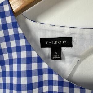Talbots Dress Women 6 Blue Plaid Gingham Lemon Embroidery 100% Cotton Preppy Shift