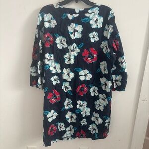 Talbots Dress Women Linen XXL Beaded Bloomcore Navy Hibiscus Tropical Floral