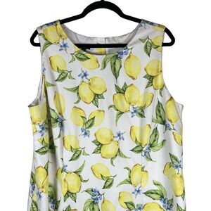 Talbots Dress Womens 18W White Lemon Print Sleeveless Shift Lined Summer