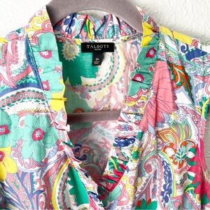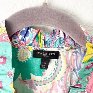 Talbots Dress Women's 2P Petite Floral Belted Button Down Fit & Flare